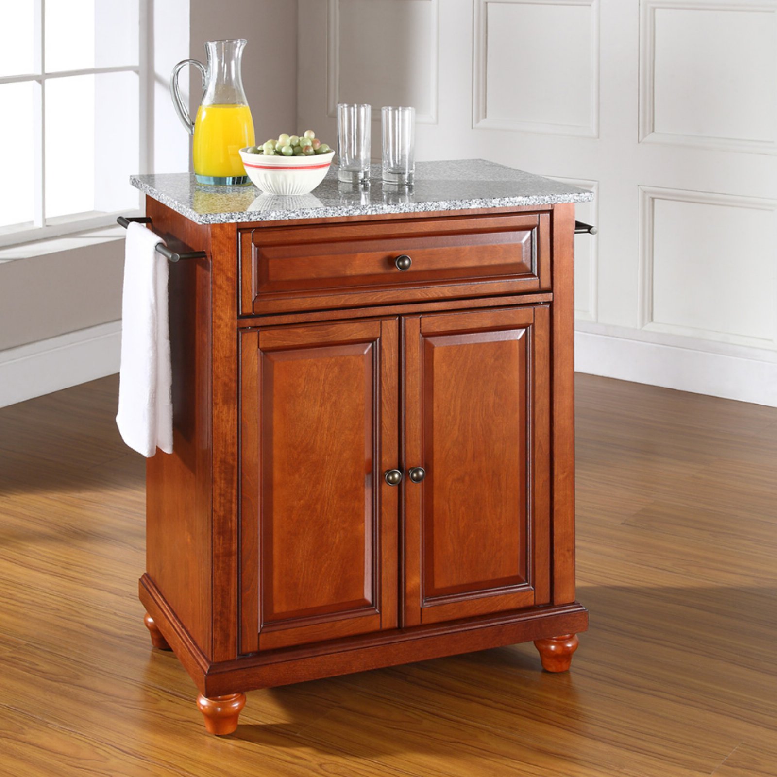 Portable granite kitchen island. You can choose a kitchen island that's portable (move it inside or out, or from room to room depending on your needs), or a stationery island. Whatever your choice, you'll find options that are every bit as beautiful (and practical) as a built-in, thanks to extras like granite or butcher-block counters... via target.com This granite-topped kitchen cart could definitely pass as a fixed kitchen island because of its high-quality materials. The base of the cart is... via amazon.com With its sleek stainless steel top, Home Styles’ portable kitchen island is a restaurant kitchen-worthy option. The steel top and spice rack are... Kuhnhenn Kitchen Island Cart Shop Now 2 /10 Raabe Kitchen Island Cart Shop Now 3 /10 Diaz Kitchen Island Cart... Top Kitchen Island from Threshold. This kitchen island makes for a great way to keep everything you use the most right at your side - with one towel bar, one drawer, three hooks and four shelves, you'll have your essentials right where they should be while you prep meals or entertain guests. With the convenience of caster... 99 Cambridge Solid Black Granite Top Portable Kitchen Island - Crosley $509.99 LaFayette Granite Top Compact... Portable Kitchen Islands With Breakfast Bar. Glass Top Wrought Iron Dining Table. Large Round Dining Table Seats 10. Kitchen Islands On Casters. Dinette Sets For Small Spaces. Granite Kitchen Island With Seating. Kitchen Table With Storage Underneath. Vintage Curio Cabinets. Upholstered Dining Bench With Back. Small Corner Cabinets Dining Room