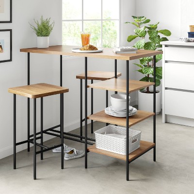 The kitchen bar table's compact design will help create a cozy bistro, breakfast nook, or stylish and functional party centerpiece in a corner of your eat-in kitchen or dining room! A three-piece bar table and chairs set is great for extra seating, staging, or entertaining.