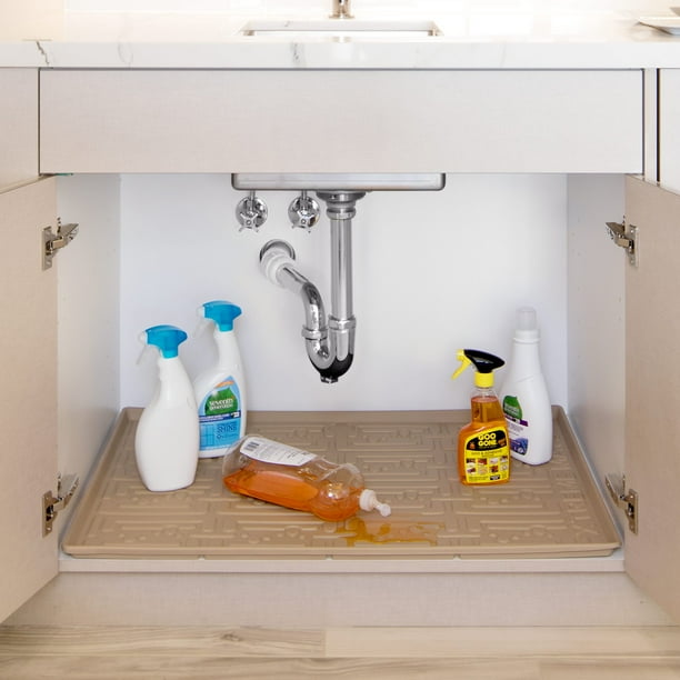 Under Sink Mat for Kitchen Cabinet, Waterproof Silicone Mat, Holds over 2 gallons, Under Sink Liner for Leaks, Drips, Spills, Easy to clean, Size 34.25”x22” with Organizer Tray by PHKBM (Beige) 4.9 out of 5 stars. 14. $47.99. $47. . 99. Get it as soon as Tue, Sep 28. FREE Shipping by Amazon.