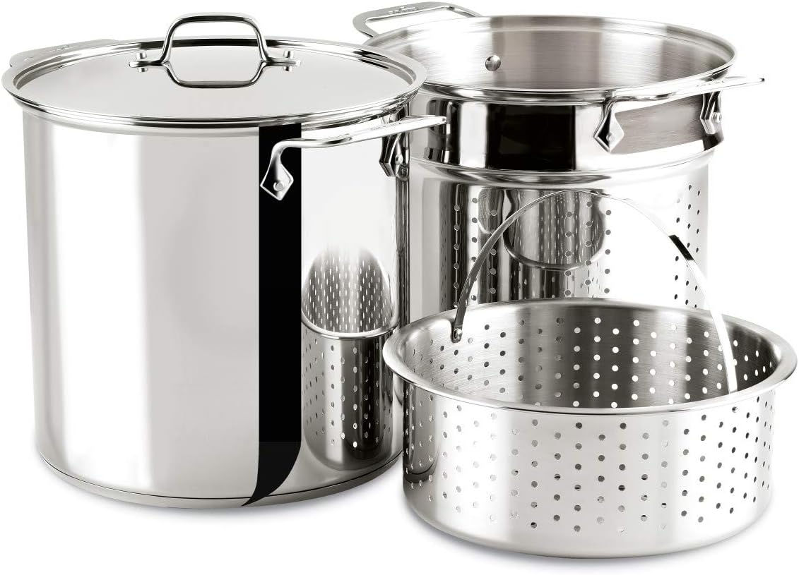 All-Clad E9078064 Stainless Steel Multicooker with Perforated Steel Insert and Steamer Basket, 8-Quart, Silver All-Clad's Stainless Steel Multi-Pots offer exceptional versatility. The large pot works well for canning, blanching, or making large batches of soups and stews, while the perforated inserts allow for convenient preparation of homemade ...