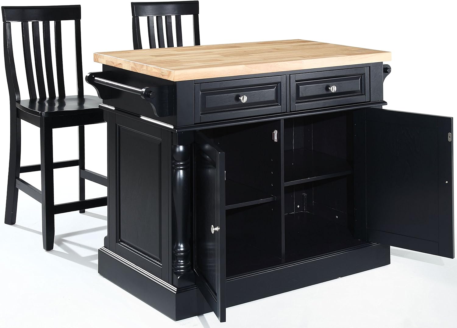 Crosley Butcher Block Top Kitchen Island with 24-Inch Black Upholstered Saddle Stools. 1 1 reviews. $731.99 - $839.99 Each Was $1,159.99 Each. Free Shipping on Orders Over $39. Crosley. Crosley Stainless Steel Top Rolling Kitchen Cart/Island With Removable Shelf. 25 25 reviews. Designed with enduring style, the Oxford Kitchen Island's traditional silhouette is sure to be a showstopper. Featuring classic design elements like raised ... Details Crosley's kitchen island, constructed of solid hardwood and wood veneer, is designed for longevity. The style, function and quality make this butcher block top kitchen island a wise addition to your home. Handsome raised panel doors and drawer fronts provide the ultimate in style to dress up any culinary space Butcher block top Crosley Oxford Butcher Block Top Kitchen Island with X Back Stools in White. 5 out of 5 stars (1) 1 product ratings - Crosley Oxford Butcher Block Top Kitchen Island with X Back Stools in White. $882.35. Was: $1,239.00. Free shipping. Crosley Black Granite Top Kitchen Cart in White. $538.78.