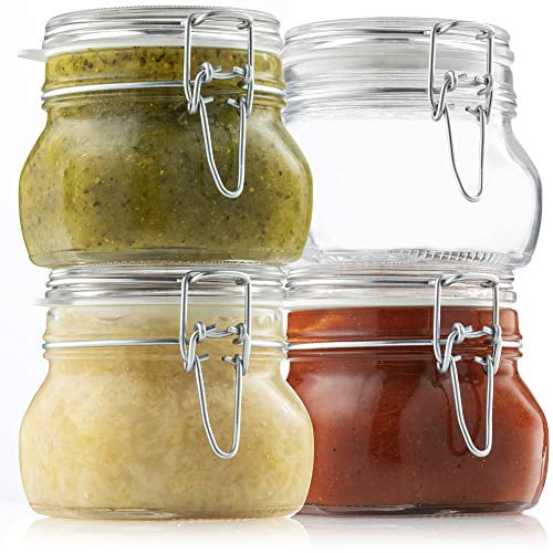 Bormioli Rocco Glass Fido Jars - (17 Ounce) with hermetically Sealed hinged Airtight lid for Fermenting, Preserving, Bulk - dry Food Storage, With ...