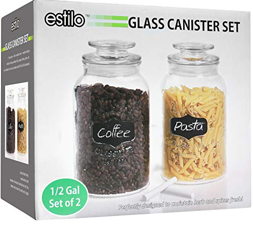 128 Oz Glass Jar With Plastic Airtight Lid (2 Pack) - Includes 6 Chalkboard Labels & 12 Pieces Of Dustless Chalk - 1 Gallon Glass Jar For Pickling, ...