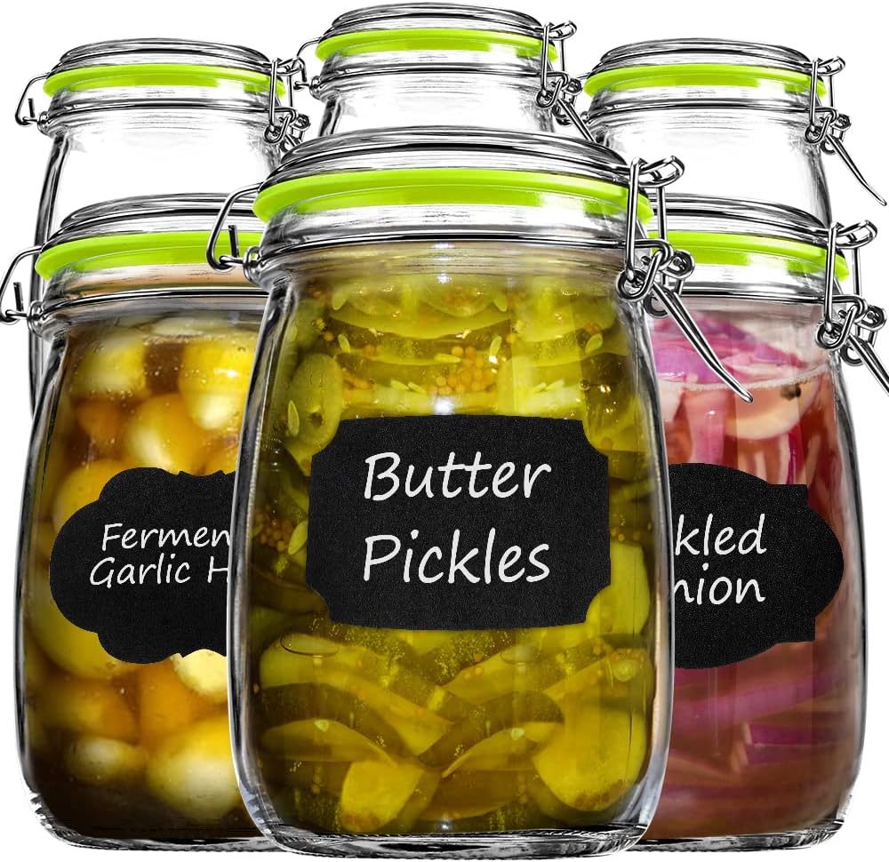 Glass Jars with Airtight Lids, Qianfenie 32 oz Wide Mouth Mason Jars with Hinged Lids for Kitchen - Glass Storage Jars with Chalkboard Labels & Pen ...