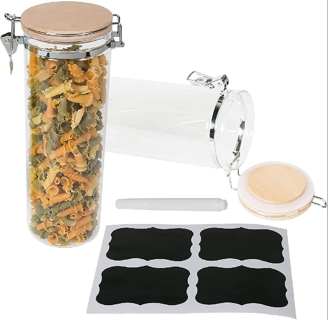 Decorative Glass Container With Lid - Multipurpose Borosilicate Glass Pasta Container, 68 Ounce Capacity - Modern Unfinished Beech Wood Lid - With ...