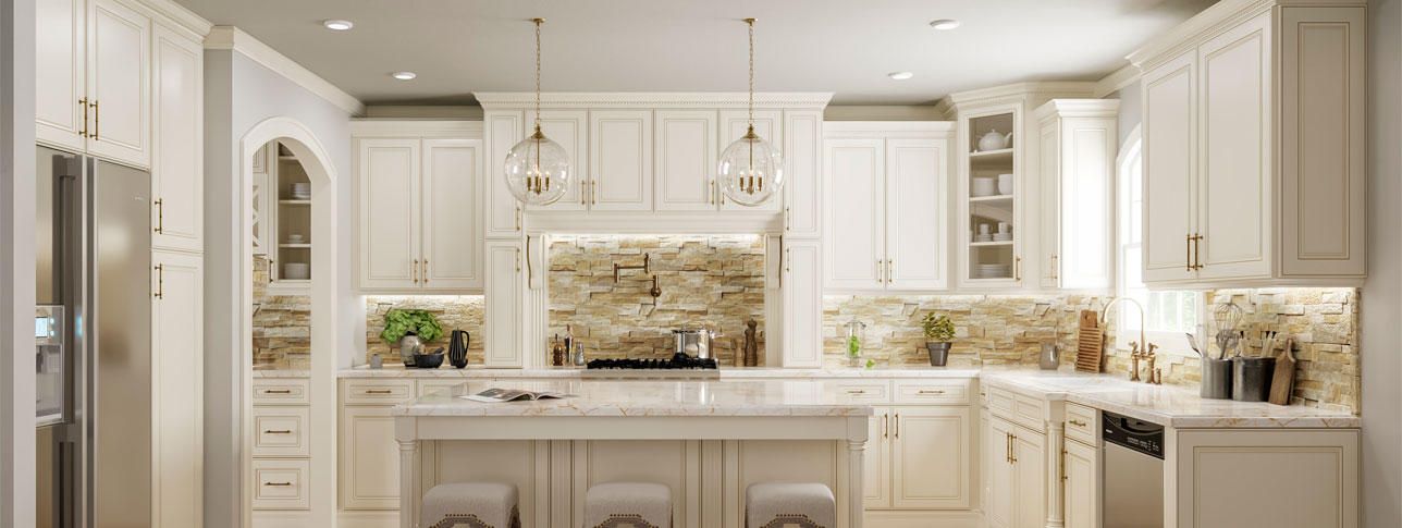 Charleston Antique White Kitchen Cabinets | Easy Kitchen ... Charleston Antique White; NEW RTA OR ASSEMBLED RAISED PANEL GLAZED DOOR STYLE CABINETS! Charleston Antique White ready to assemble in stock, quick ship Kitchen Cabinets! Very popular, clean and classic mitered door cabinets painted White with caramel glaze! 1/2" Plywood Box Construction, 3/4" Plywood Shelves; Door is MDF w/ Wood Veneer painted
