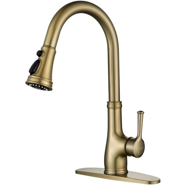YKBATH Gold Kitchen Faucets with Pull Down Sprayer,Single ...