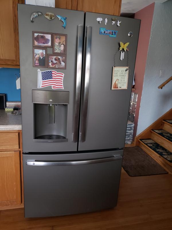 French Door Refrigerators Comparison | GE Appliances GE CafĂ©™ Series ENERGY STAR® 22.2 Cu. Ft. Counter-Depth French-Door Refrigerator with Hot Water Dispenser CYE22TSHSS GE Profile™ Series ENERGY STAR® 22.1 Cu. Ft. Counter-Depth French-Door Refrigerator PYE22PSHSS $ 3429 MSRP $ 3100 MSRP: Show Me The Differences ... PYE22PSHSS GE Profile GE Profile Series ENERGY STAR® 22.1 ... IĂ•ve had this fridge for almost 3years now, and itĂ•s been pretty noisy, but not bad enough to change it out.The top vent in fridge went out and now our top half of fridge doesnĂ•t cool. Fortunately I bought the extended warranty, and a service tech was out within a few days. GE Profile PVD28BYNFS manual Manual. View the manual for the GE Profile PVD28BYNFS here, for free. This manual comes under the category Refrigerators and has been rated by 1 people with an average of a 7.5. This manual is available in the following languages: English. GE Profile French Door Refrigerator | Kitchen | Abt Easily wipe away smudges and fingerprints for a look that's always sparkling clean Counter-depth design Offers a built-in look by fitting nearly flush with surrounding cabinetry Hands-free Autofill Lets you walk away while the dispenser automatically fills any container with filtered water