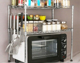 19.7'' / 23.36x13.4x21'' 2-Tier Stainless Steel Stainless Steel Kitchen Microwave Oven Rack Multi-Function Microwave Organizer Storage Spice Shelf, ...