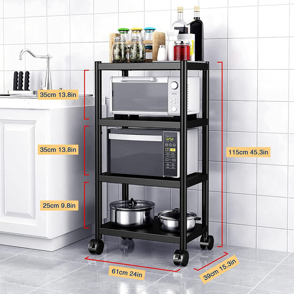 Kitchen Cart Microwave Shelf, 4 Tier Heavy Duty Corner Bakers Rack for Oven Pot & Food, Wire Shelving Rack w/ Wheels, Metal Storage Shelves for ...
