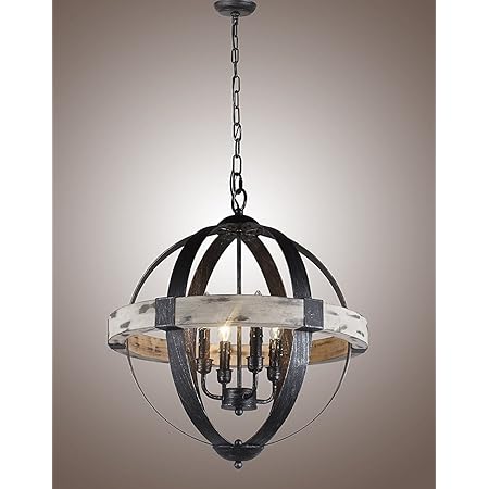 Industrial Adjustable Wrought Iron Vintage Retro Pendant Light - LITFAD 22" Edison Metal Globe Shade Hanging Ceiling Light Cage Chandelier Pendant ...