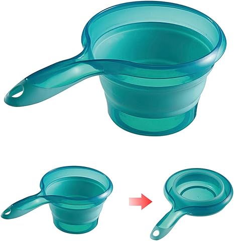 Folding Water Ladle Collapsible Spoon Collapsible Scoop Cup material Thicken great for Bathing Kitchen Ladles Bathroom Hair Washing Water Scoop (Blue)