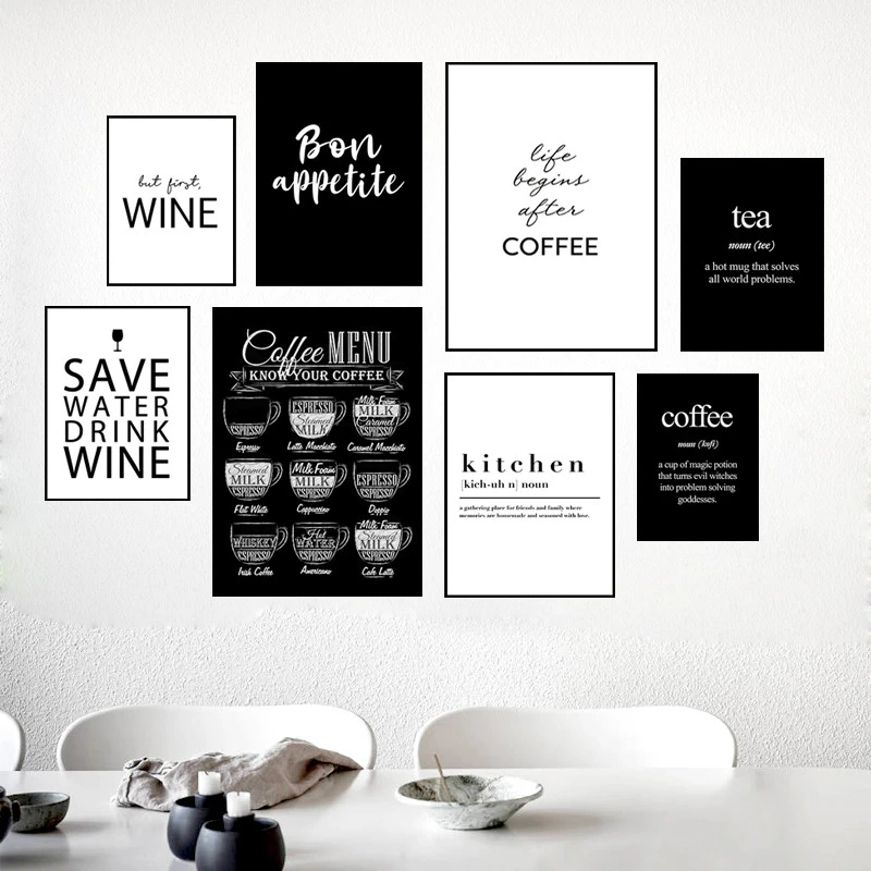 Kitchen Wall Art. Make your kitchen shine with the perfect posters! We offer beautiful wall art with guides to wine and coffee, as well as vegetables and meats. Perfect to combine with our charming quotes and funny and tasteful photography. We have fitting posters for your kitchen in both colour and black and white. Categories.