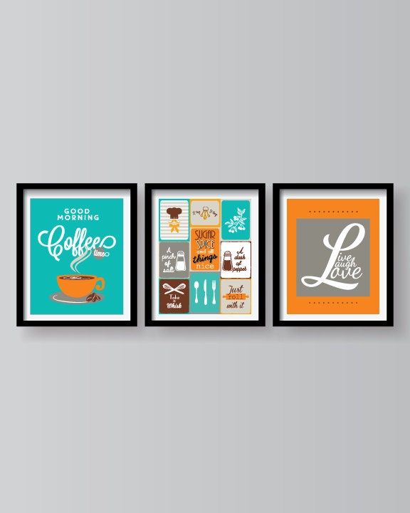 Orange Turquoise Kitchen decor Kitchen wall art Kitchen prints Kitchen art Kitchen wall prints Kitchen posters set Kitchen Set of 3 prints