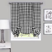 Northridge Plaid Tailored 57'' Kitchen Curtain in Black And Cream. ... Versatile woven yarn dyed buffalo check with waffle weave accents. These black, gray, and cream curtains are made of a soft and durable cotton/polyester blend and easy care machine wash and dry. This curtain will add style to your windows.