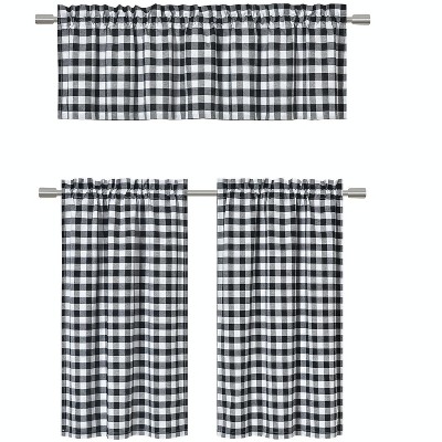 Black and gray kitchen curtains. 6 colors. No. 918. Martine Microfiber Semi-Sheer Rod Pocket Kitchen Curtain Valance and Tiers Set, 14" L x 54" W. $35.00. Sale $20.99. Extra 25% off use: VIP. Extra 25% off use: VIP. With offer $15.74. more like this. 6 colors. No. 918. Martine Microfiber Semi-Sheer Rod Pocket Kitchen Curtain Valance and Tiers Set, 14" L x 54" W. Cyber Monday Special. $35.00. Sale $13.99. more like this. No. 918. Rosalind Watercolor Floral Tier and Valance Collection. From $16.99. Achim Buffalo Check Window Curtain Tie Up Shade, 42 x 63, Gray. 90. 4.2 out of 5 Stars. 90 reviews. Save with. 2-day shipping. Achim Buffalo Check Kitchen Curtains, Set of 2 Tiers, 58 x 36, Gray. Options. From $12.28. Target / Home / red and black curtains ... Blair Farmhouse Plaid Semi-Sheer Tab Top Kitchen Curtain Valance and Tiers Set - No. 918. No. 918. 4.7 out of 5 stars with 31 ratings. 31. ... Edward Trellis Room Darkening Window Curtain Set Gray - Lush Décor. Lush Decor. 3.4 out of 5 stars with 21 ratings. 21. $27.99 - $54.99.