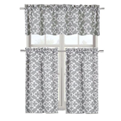 Delicate Lace 3-Piece 36-Inch Kitchen Window Curtain Tier Pair and Valance Set in Grey. $24.99. Excluded from coupons. Free Shipping on Orders Over $39.