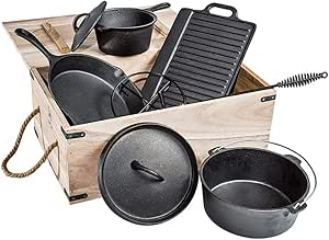 7 Piece Heavy Duty Cast Iron Camping Cooking Set with Box (0) Regular price $299.99 Sale price $189.99 Enameled Cast Iron Skillet Deep Sauté Pan with Lid, 12 Inch, Purple. Regular price $103.95 Enameled Cast Iron Casserole Braiser - Pan with Cover, 3.8-Quart, Regular price $76.95 ...