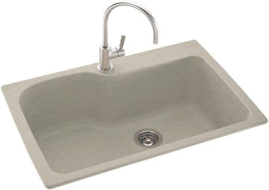 Swanstone KS03322SB.072 Solid Surface 1-Hole Drop in Single-Bowl Kitchen Sink, 33-in LX 22-in HX 10-in H, Pebble