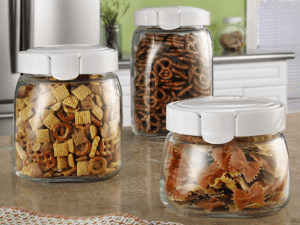 AIRTIGHT GLASS CANISTER SET - Airtight ring makes the glass lid close tightly, which ensure inside food of the container is safely stored and kept fresh. SET OF 3 CANISTERS - Set includes three 1/2 gallon glass canisters with lids. 2. Chefstory 50oz Airtight Glass Jars with Lids.