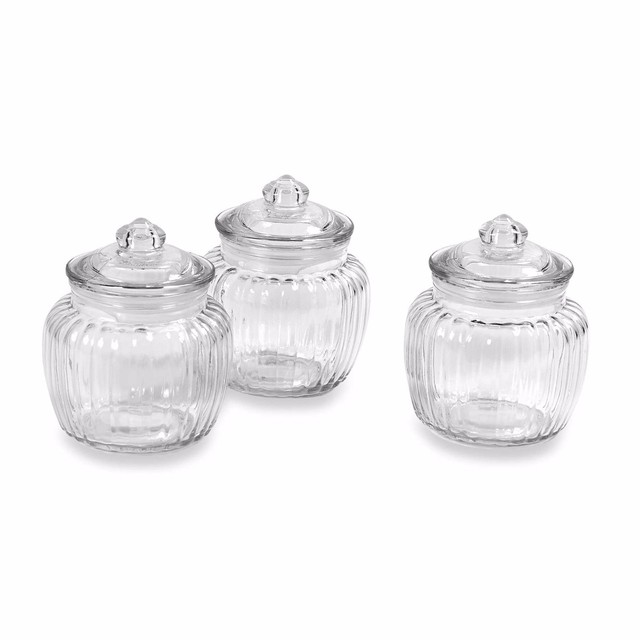 The Orren Ellis Airtight 3-Piece Kitchen Glass Canister Set will keep your kitchen counters organized while freeing up space. The sleek and simple matte, black finish will blend with all types of kitchen decor for a stylish and modern touch. Each canister is equipped with an air-tight sealing lid to keep contents safe and fresh. Canister Set of 5, Glass Kitchen Canisters with Airtight Bamboo Lid, Glass Storage Jars for Kitchen, Bathroom and Pantry Organization Ideal for Flour, Sugar, Coffee, Cookie Jar, Candy, Snack and More. $ 39.99. $34.99 in stock. 3 used from $26.24. Get Oggi Airtight Glass Canister Set With Clamp Lids & Silicone Gaskets delivered to you within two hours via Instacart. Contactless delivery and your first delivery is free! Start shopping with Instacart now to get products, on-demand. Break-resistant canister set: These airtight jars are made with superior quality, highly durable new food-grade PET plastic. Even if it falls and hits the ground, the material won't break. Airtight Seal: Each container is well sealed, equipped with a silicone gasket, and a stainless steel locking clamp to make sure your food stays clean ...