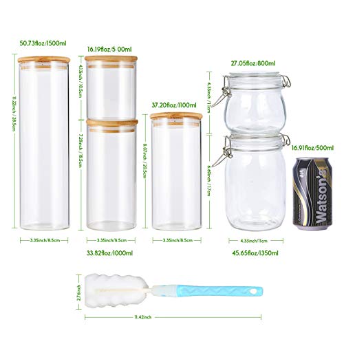 LPAIWXY Glass Food Storage Jars With Bamboo Lids, High Borosilicate Glass Containers Sets,Airtight Glass Canister Sets For Home Kitchen,Tea, Herbs, ...