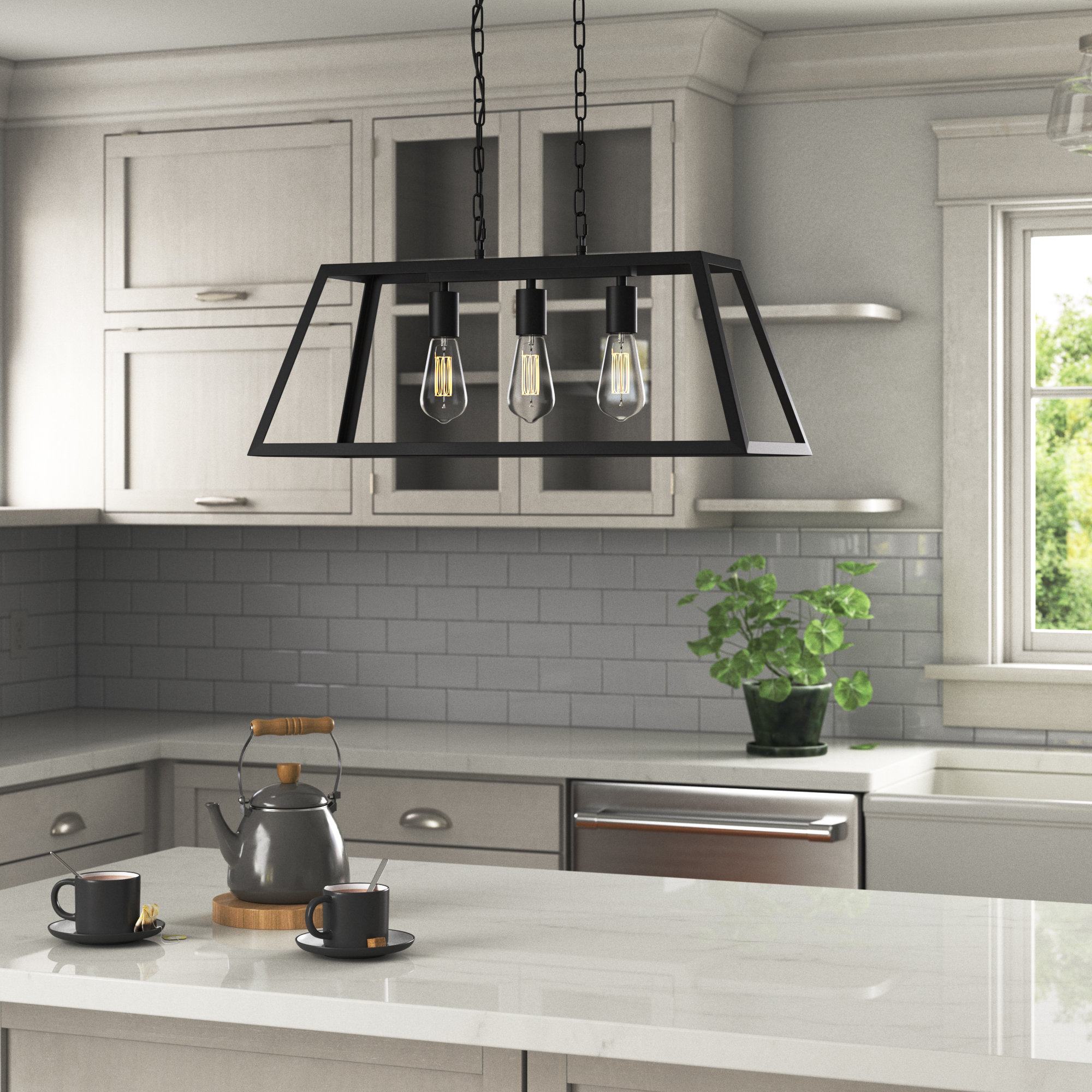 Kitchen Island Lighting - Wayfair This fashionable linear pendant kitchen island light fixture is made of sturdy iron metal with a downward light bulb design in the metal square. Appealing linear feel for you to use for your own house or business premises. 4pcs max. 60-watt e26 base led/CFL/other bulbs required(not included in the package). Number of Lights: 4