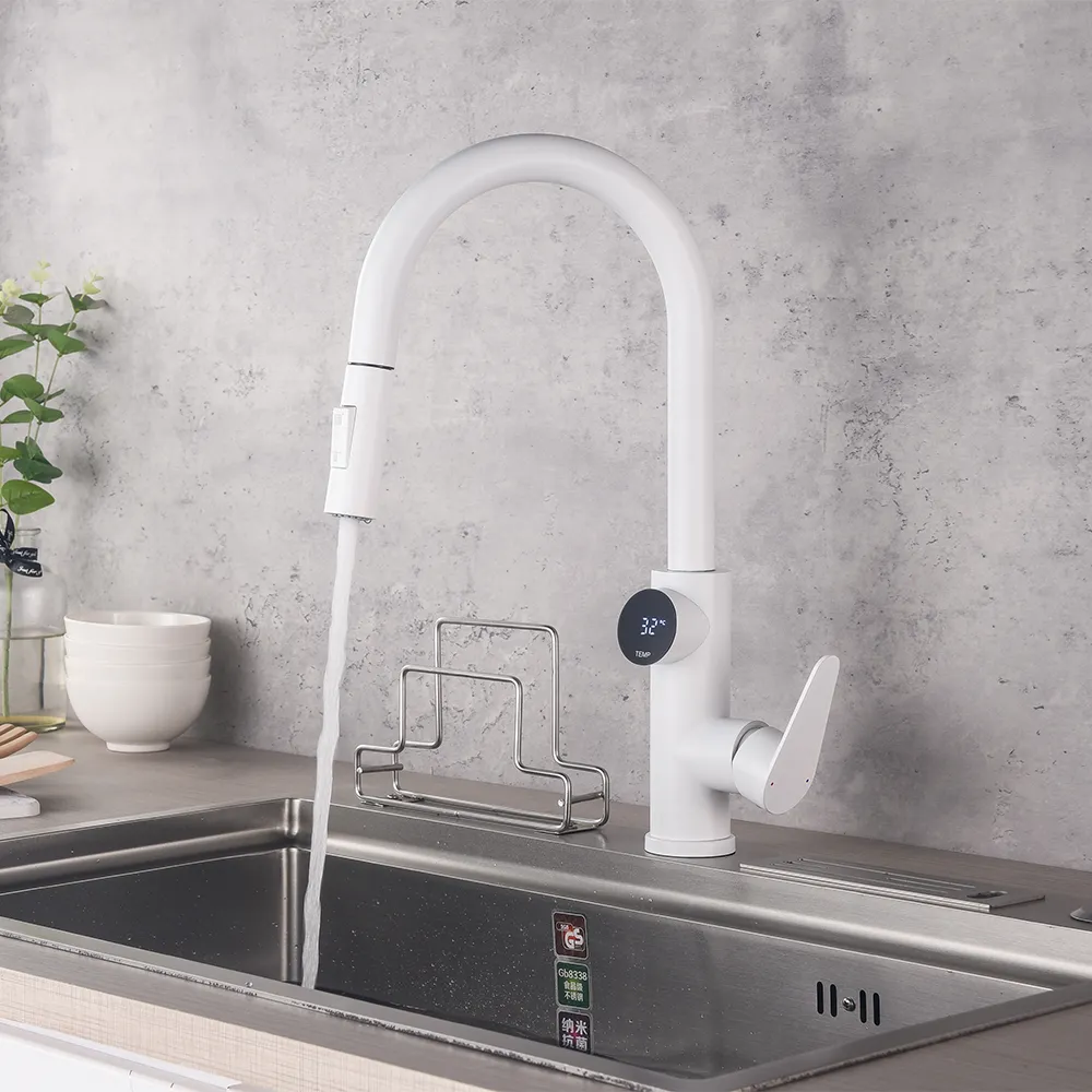 Furniture, Faucets, Outdoor, Lights and Decor Straight from... - Homary Modern Sleek White & Chrome Pull-Down Spray Kitchen Faucet Single Handle Solid Brass. Commercial Pull Down Pre-rinse Spring Sprayer Polished Chrome Kitchen Sink Faucet with Deck Plate Solid Brass.