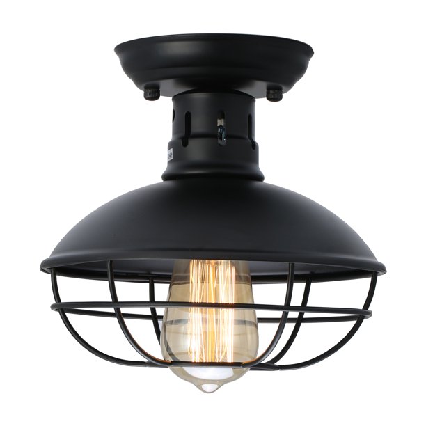 Industrial Metal Cage Ceiling Light, E26 Rustic Mini Semi Flush Mounted Pendant Lighting Dome/Bowl Shaped Lamp Fixture Farmhouse Style for Foyer ...