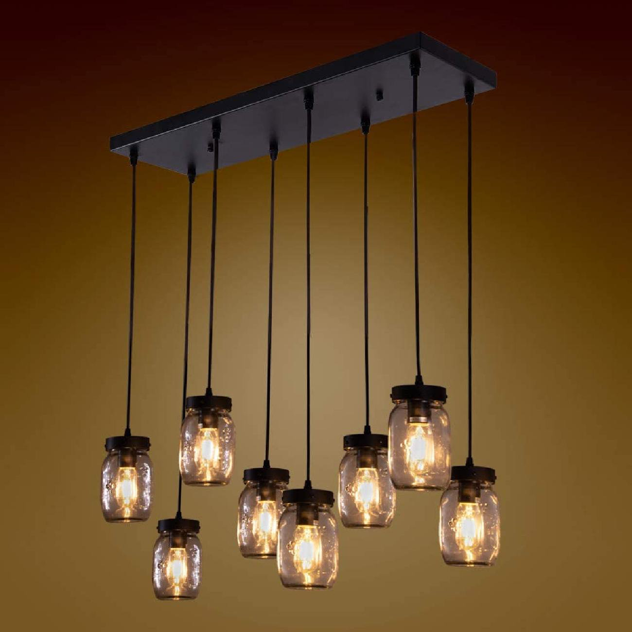 8-Light Mason Jar Chandelier For Kitchen Island, Farmhouse Rustic Linear Cluster Hanging Pendant Light Fixture Dining Room Living Room, Matte Black ...