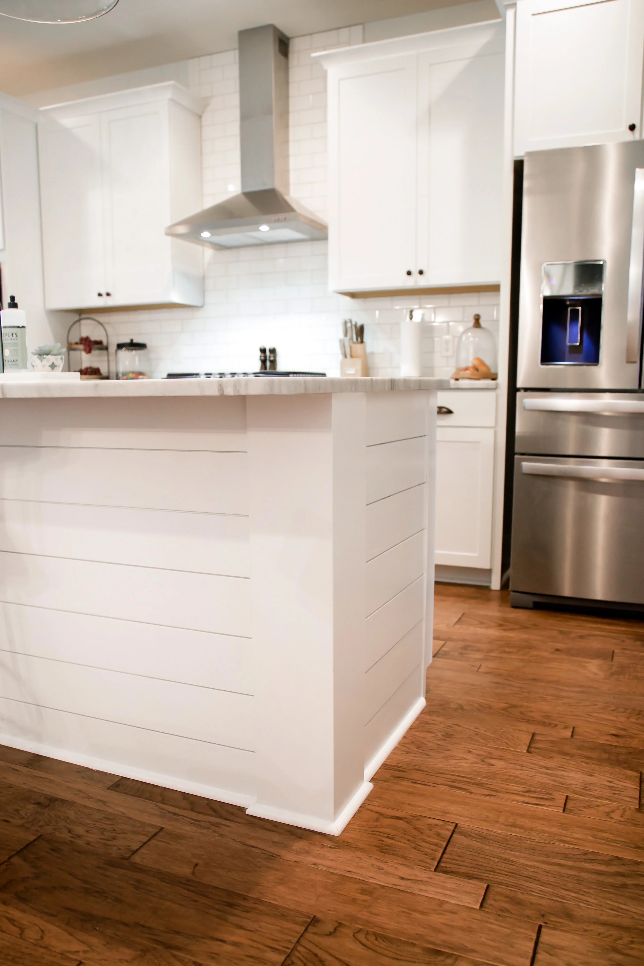How to install kitchen island cabinets. Use straight cuts on plywood and stock boards to wrap the cabinets. Before you begin building the island, order a countertop that's 21-1/4 inches wide by 56 inches long so it's ready for installation once the base piece is completed. Shop Lumber Shop Paint Build the DIY Kitchen Island Case Step 1: Cut the Boards On average, kitchen islands cost $3,000 to $5,000 with high-end island installations costing $10,000 or more. However, installing a simple kitchen island out of base cabinets yourself reduces the cost to $400 to $1,500. For a 78-inch long x 36-inch wide kitchen island, the cost of material is around $1,100. Check that there's enough space for installation. After determining where you want your kitchen island to go, check that there's enough free space in the room so installation can take place safely without damaging the surrounding area or existing appliances nearby. Measure everything with tape and record the dimensions in a notebook or computer ... Anchor island cabinets using the same positioning and blocking techniques we show for the peninsula cabinets. However, it's best to install your upper cabinets before starting on an island to keep a clear work area in the middle of the kitchen. How to Install Kitchen Cabinets Step 7: Install the upper cabinets