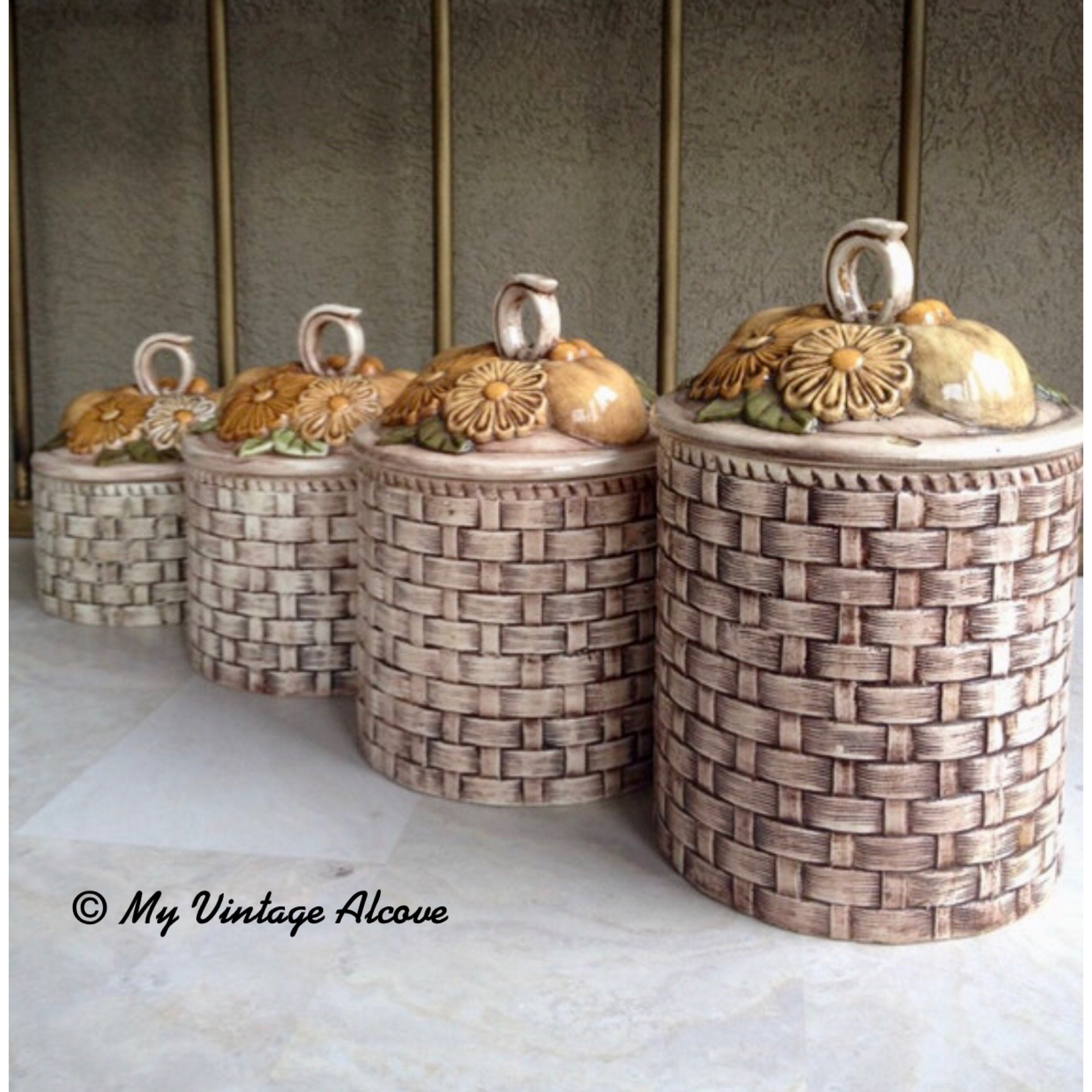 Vintage Canister Sets, Vintage Ceramic Kitchen Canisters, Retro Canister Set, Retro Kitchen Canisters, Vintage Ceramic Kitchen Canister Set