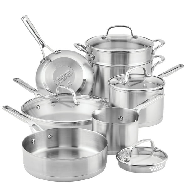 Amazon.com: kitchenaid induction cookware KitchenAid 5-Ply Clad Stainless Steel Cookware Pots and Pans Set, 10 Piece, Polished Stainless 344 $499 99 Get it as soon as Tue, Feb 22 FREE Shipping by Amazon More Buying Choices $441.74 (2 used & new offers) KitchenAid 3-Ply Base Stainless Steel Cookware Pots and Pans Set, 10 Piece, Brushed Stainless 788 $259 99 Get it as soon as Tue, Feb 22