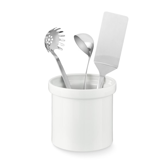 Ceramic Partitioned Utensil Holder | Williams Sonoma CA ... A balance of elegant design and hidden order makes our ceramic utensil holder a countertop original. It's crafted of stoneware with a fresh white glaze and features an interior three-walled partition, which keeps essential tools—from spatulas and spoons to whisks and tongs—separated and easier to remove while prepping, cooking and serving.