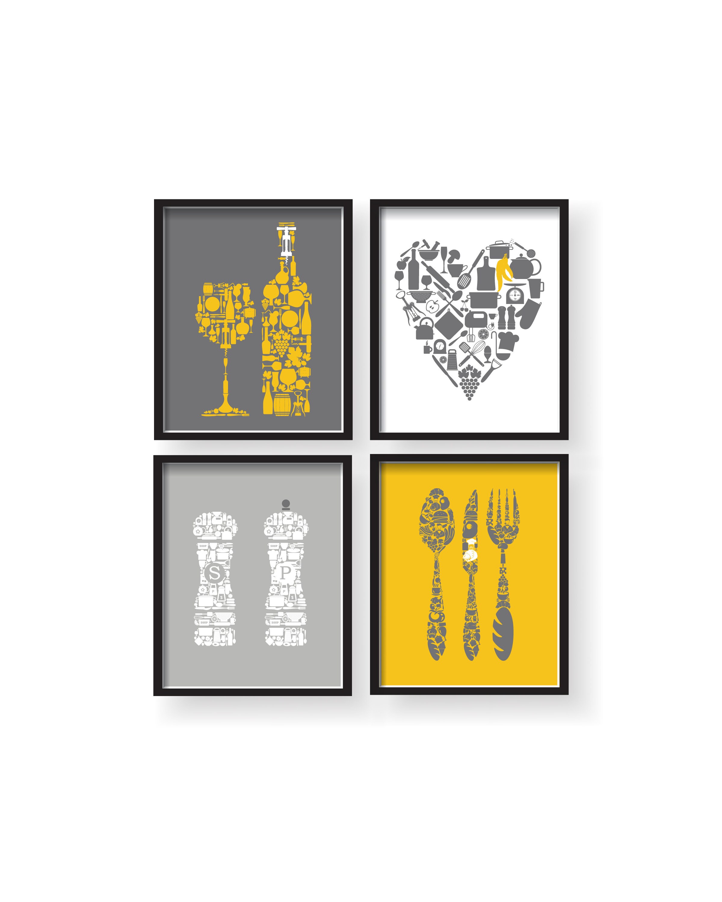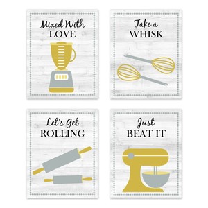 Modern Mustard Yellow Gray Kitchen Wall Decor, Yellow Kitchen wall art, Kitchen prints, Modern Home Decor, Dining room decor - Unframed