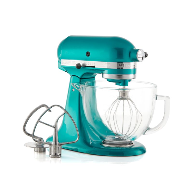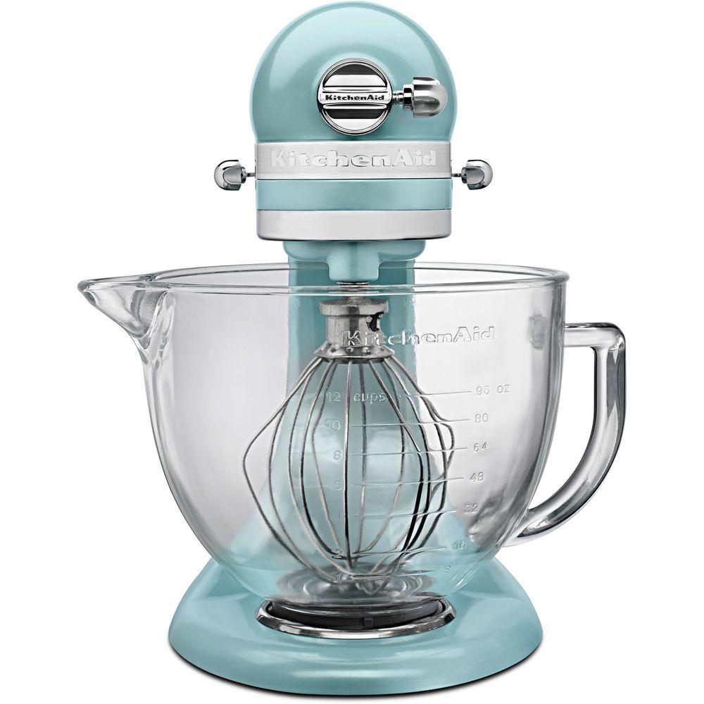 KitchenAid Artisan Designer 5 Qt. 10-Speed Sea Glass Stand ... Blue sea KitchenAid stand mixer matches your decor perfectly. Create family favorites with this Artisan Designer 5 Qt. 10-Speed Sea Glass Stand Mixer with Glass Bowl. The mixer's tilt-back head design makes it easy to access the bowl and beaters.