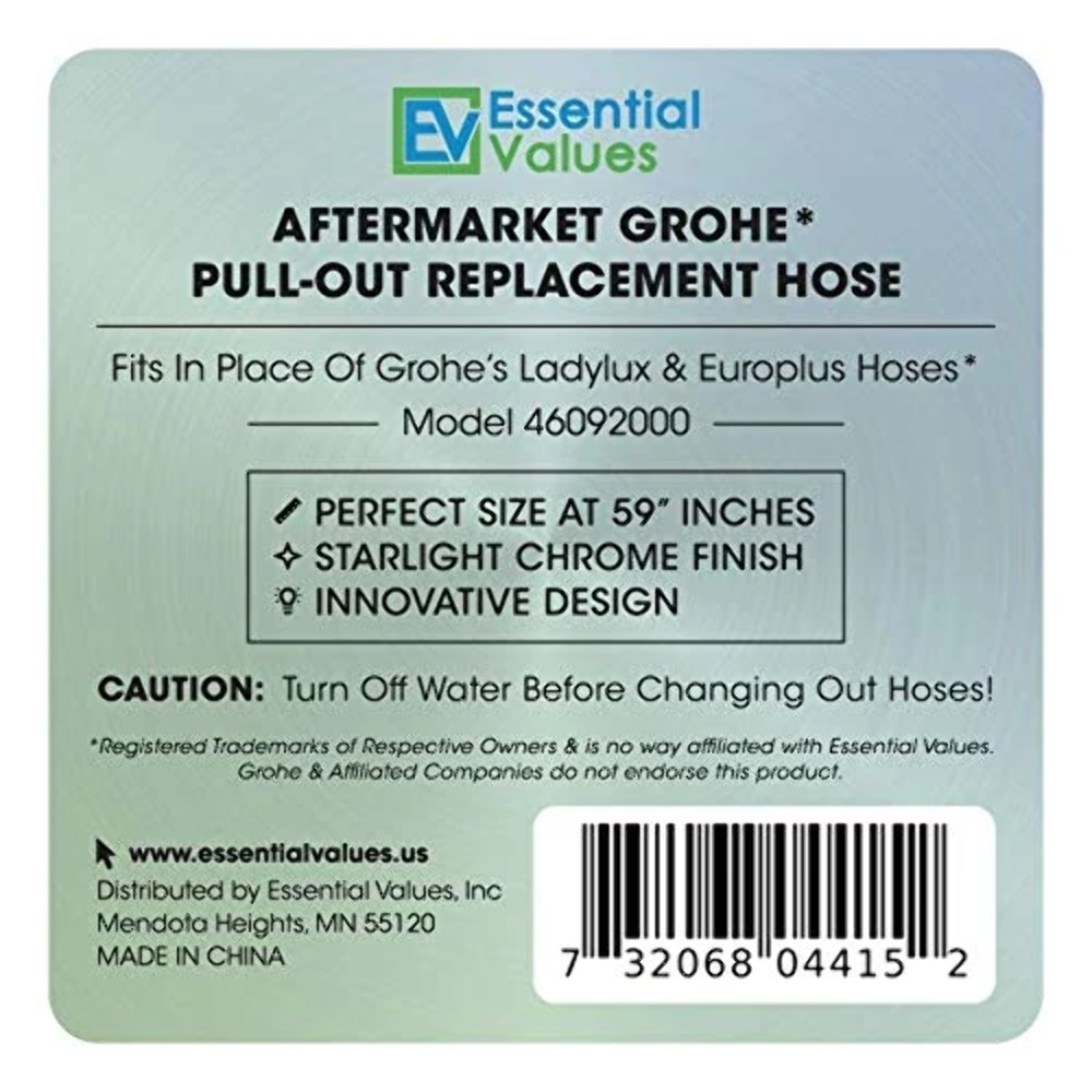 Essential Values Pull Out Replacement Hose 46092000 (59” Inches), Replacement for Grohe Hand Shower Faucets only | Fits Ladylux, Euro Plus & More ...