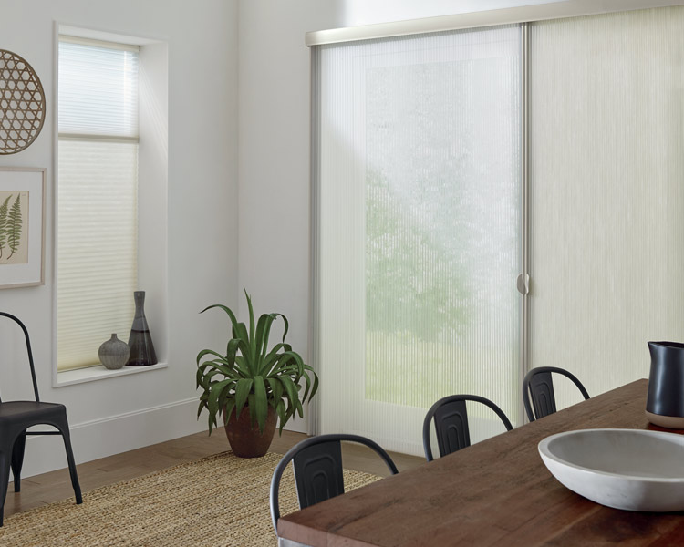Blinds for Sliding Glass Doors: Alternatives to Vertical ... Window Coverings for Sliding Glass Doors: Vertical Cellular Shades Bali Verticell 3/8 Inch Double Cell Light Filtering Shades From Blinds.com For wide windows and patio doors that need insulation from the heat or cold, a cellular shade is the best option. The shade can be opened from either side and is barely noticeable when fully collapsed.