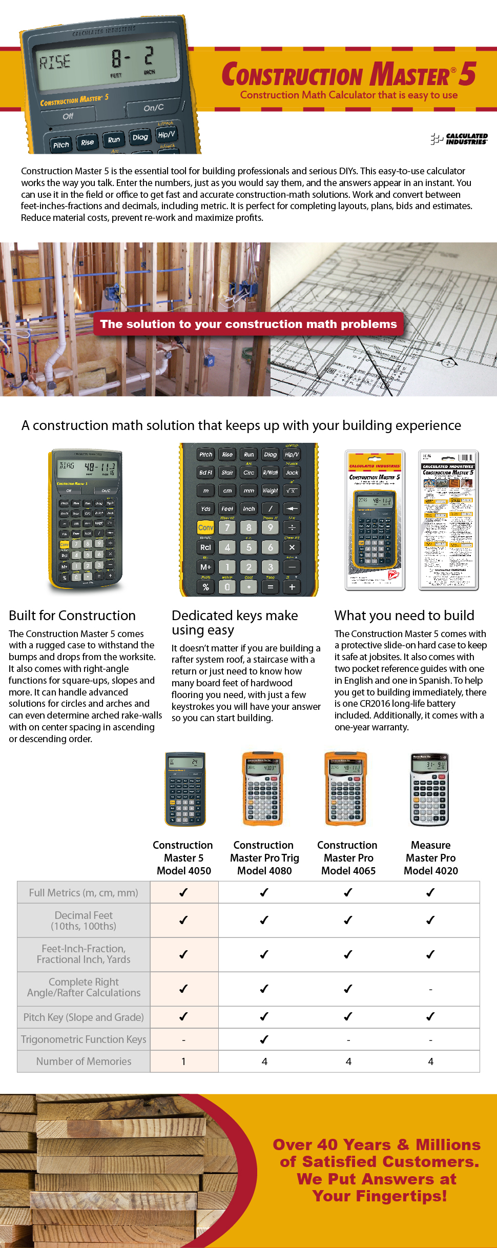 Construction Master Calculator | The Home Depot Canada Enter the numbers, just as you would say them and the solutions appear in an instant they're built-in to your Construction Master 5. Perfect for completing layouts, plans and bids on the job site or in the office. Reduce the risk of expensive errors when estimating costs and materials. Save time, money and frustration!