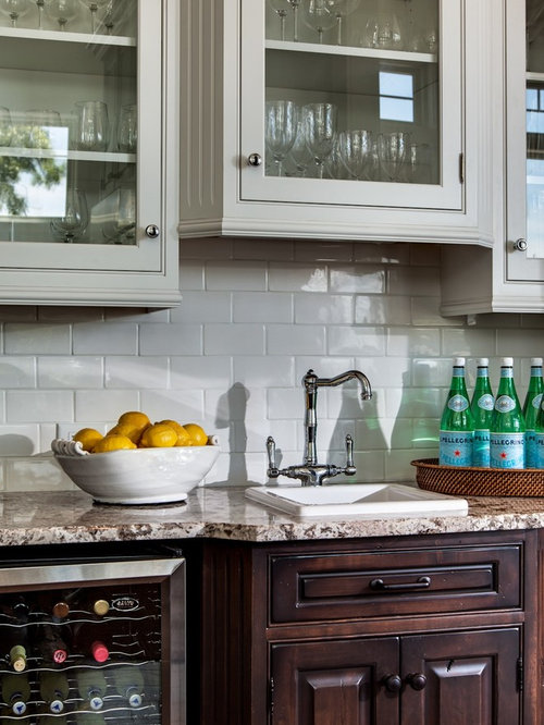 Lakefront Cottage Kitchen Makeover - Better Homes & Gardens 5 of 10 Save Pin FB Nature-Inspired Colors The backyard vista of a lake inspired the cabinetry's soft green color. Coordinating shades of green grace the walls and ceiling. Subway tile is a classic choice for the backsplash; however, a herringbone pattern behind the range puts an unexpected twist on the look.