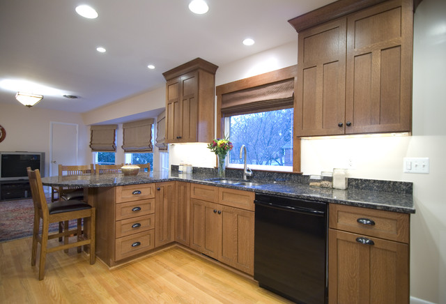 The Ultimate Guide to Craftsman Kitchen Design - Let's Remodel Color schemes for a Craftsman or mission style kitchen are earthy neutral tones. Stick with off-white, beige, and muted tones of blues, greens, and yellows. Wood is a central theme, so your paint colors should complement the wood finish, not overpower it. Cabinet stains should stay true to durable cherry, maple and oak tones. 45 Amazing Craftsman Style Kitchen Design Ideas - Instaloverz Craftsman style kitchen is one of the better ideas to use in your kitchen to give it a fantastic look. We should use flat slab drawer's front for top drawers. We should use some double panel doors to give it a great look. We can use many more ideas to design our kitchen in craftsman's style. 100 Craftsman Kitchen Ideas (Photos) - Home Stratosphere This Craftsman-Style kitchen has a U-shaped peninsula with grayish countertops and a wooden body. One side of this peninsula has a second layer that serves as a bar paired with elegant wooden chairs that have patterned cushions. The two walls of the kitchen are dominated by wooden drawers and cabinets that also house the appliances.