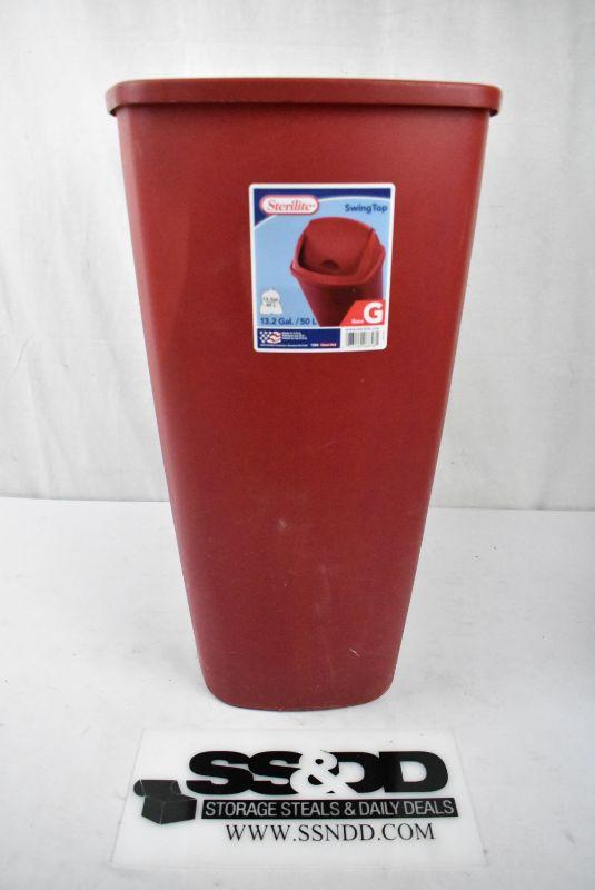Sterilite Corporation Sterilite 12.6 Gallon Locking StepOn Garbage ... The Sterilite 12.6 Gallon Locking StepOn Wastebasket is a trash can with a locking lid and step-on pedal that opens the lid for hands-free garbage disposal. The lid locks securely onto the base of the can, preventing pets and kids from accessing the trash. The lid will stay shut even when the can is knocked over.