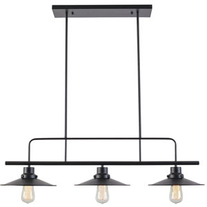3-Light Kitchen Island Pendant - Overstock - 34380552 Description Details: This pendant is decorated with 3 industrial black finishes, hanging from a straight line. This island incorporates classic warehouse lighting into a neat package, which is perfect for hanging above an industrial dining table or kitchen island.