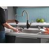 Delta Fuse Pull-Down Kitchen Faucet with Magnetic Docking Spray Head ... The design of the Fuse Kitchen Faucet was inspired by the emerging trend of color in unexpected places and soft contemporary style Fuse spices up the kitchen with colorful finish options Spout swivels 360 degrees to allow for unobstructed sink access High-arch gooseneck spout further allows for unobstructed sink access