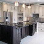 Mexican Style Kitchen - Photos & Ideas | Houzz Example of a tuscan kitchen design in Dallas Save Photo Kitchens before and after photos Elis Deschamps Example of a tuscan galley brown floor kitchen design in Austin with an undermount sink, recessed-panel cabinets, black cabinets, beige backsplash, mosaic tile backsplash, two islands and white countertops
