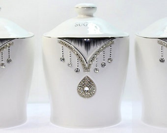 Amazon.com: Sugar And Coffee Canisters Home Acre Designs Kitchen Canisters Set of 3 - Airtight Tea, Sugar & Coffee Containers - Rustic Farmhouse Canister Jars - White 3,118 $4199 Join Prime to save $8.40 on this item Get it as soon as Fri, Aug 26 FREE Shipping by Amazon Small Business More Buying Choices $40.11 (3 used & new offers) › Canister-Canisters-AirtightAmazon.com: Canister Set of 5, Glass Kitchen Canisters with ... This item: Canister Set of 5, Glass Kitchen Canisters with Airtight Bamboo Lid, Glass Storage Jars for Kitchen, Bathroom and Pantry Organization Ideal for Flour, Sugar, Coffee, Candy, Snack and More $34.99 › kitchen-tabletop › pdpAlika Crushed Diamond Glass 3 Piece Coffee, Tea, & Sugar Set The 4 piece canister set is used not only for flour, tea, sugar, and coffee but can also be used for keeping cookies, salt, spices, and other fresh ingredients. Durable airtight food storage with lids - pressure-fitted airtight lid ensures contents stay dry and fresh. Our farmhouse canisters are made with sturdy high-quality powder-coated metal.