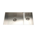 Houzer 60/40 Undermount Double Bowl Sink - Kitchensource.com Made of premium grade T-304 stainless steel, this Classic 60/40 Double Bowl Sink from Houzer exhibits timeless design with flexibility, flair and maximum work room. This model boasts a 9" height and StoneGuard™, an exclusive undercoating specially formulated to reduce noise of splashing water and clattering dishes. It also features SpecPlus™ edge, a beveled edge on the outer rim ...