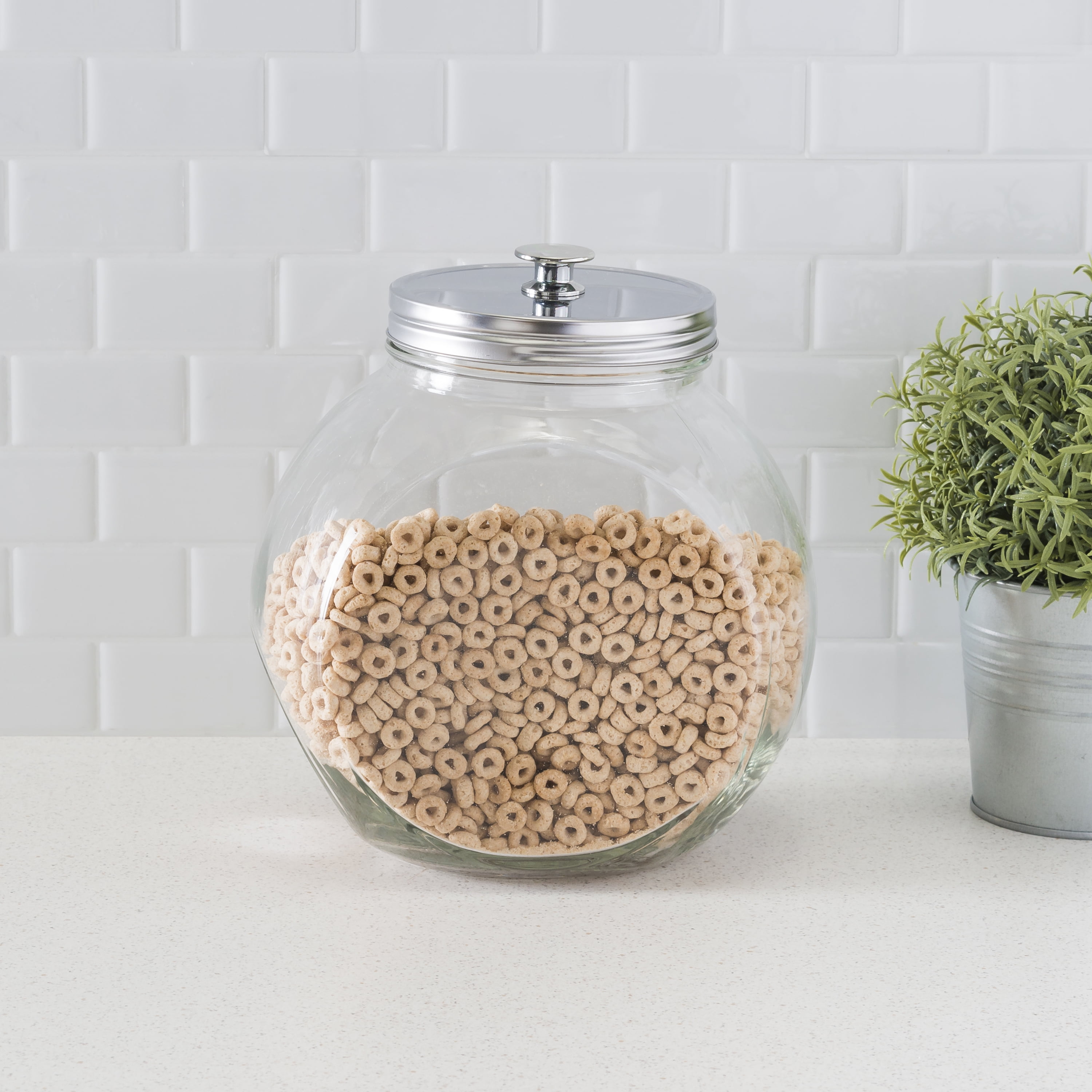 Juvale Glass Cookie Jar and Candy Dispenser with Scoop and Stainless Steel Magnetic Lid, Large Canister for Dry Goods, Food Storage (58 oz)