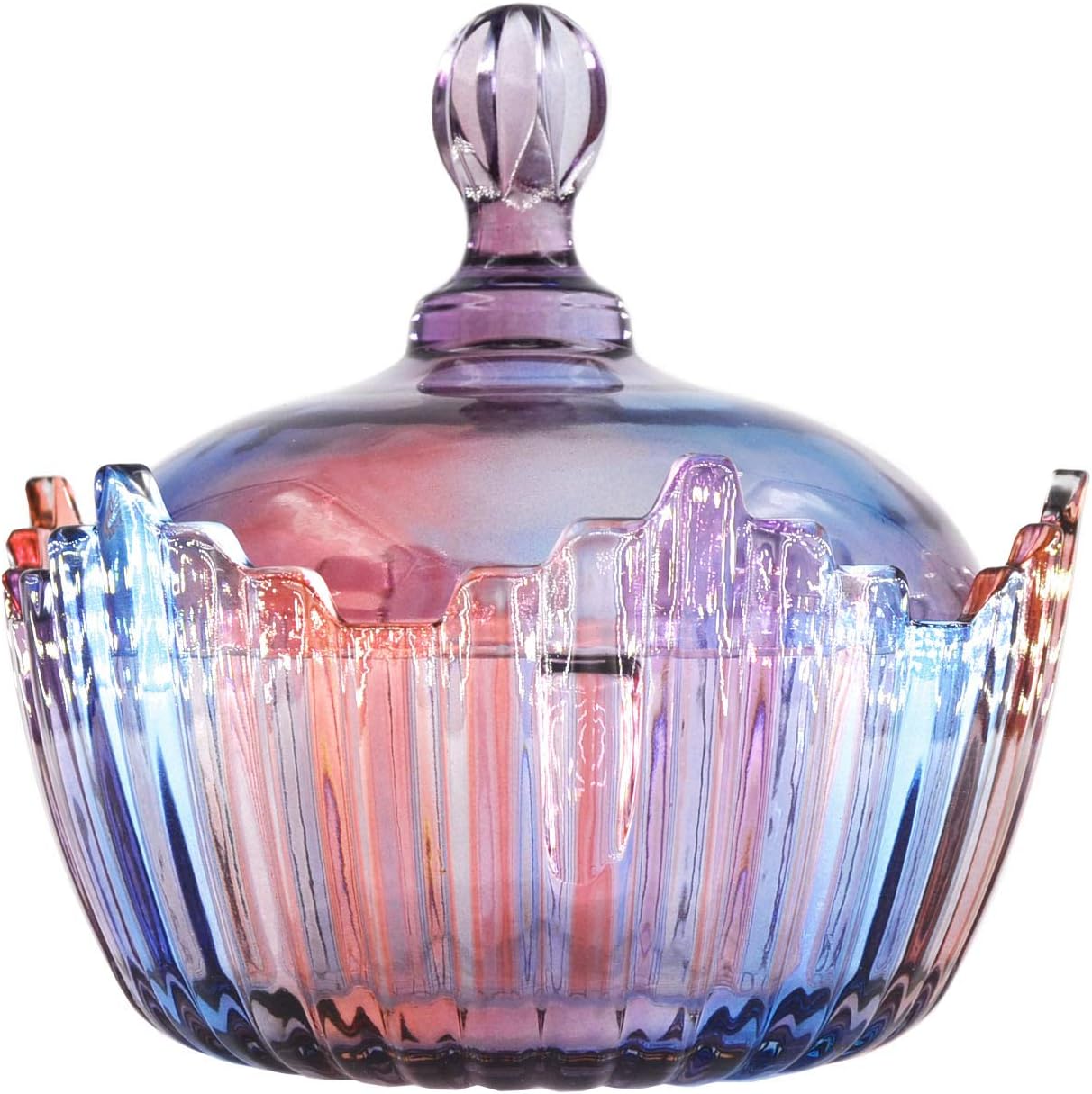 Royal Large Glass Candy Dish with Lid Purple Rainbow Clear Glass Apothecary Jar Candy Jar Wedding Candy Buffet Jars Food Jar (10oz)