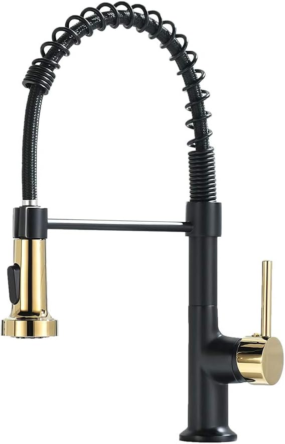 WOWOW Black and Gold Kitchen Faucet with Pull Down Sprayer - WOWOW Faucets 【 Care for Your Health 】This heavy-duty kitchen faucet which made of eco-friendly 304 stainless steel is lead-free and puts your family's health first. It stands out with a unique Black & Gold finish, will absolutely become an eye-catching highlight for the kitchen. 【 2 Modes to Meet Your Need 】STREAM & SPRAY.